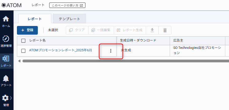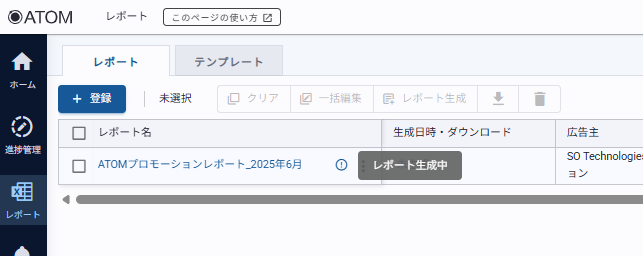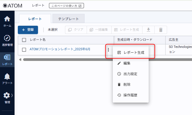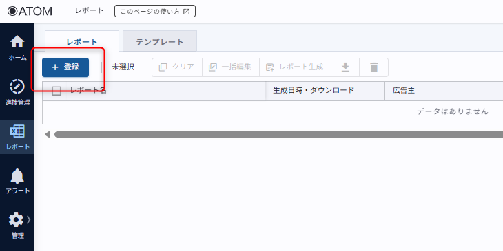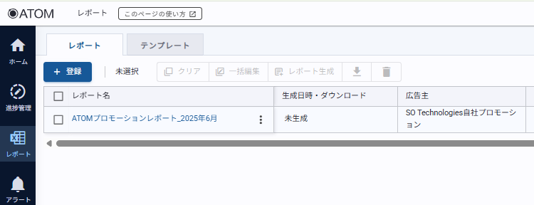 今回はATOMで用意しているスタンダードテンプレートを利用して当月のレポートを作成してみましょう。