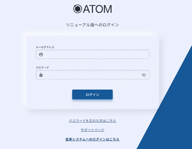 ATOMのログイン画面にアクセスしたらメールアドレスとパスワードを入力してログインします。