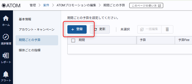 期間ごとの予算を設定することでレポートへの予算額の出力が可能となります。