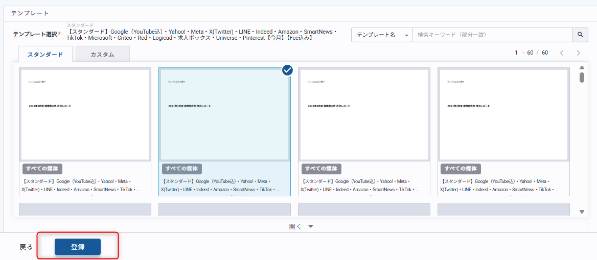 今回は今月のFee込みレポートを作成できるスタンダードテンプレートを選択して作成していきます。