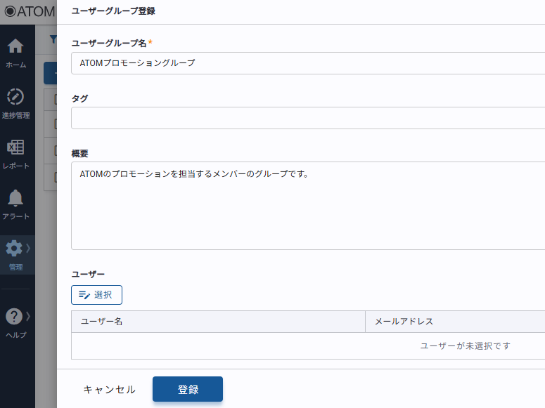 ユーザーグループの登録についてはユーザーグループを登録するを確認してください。
