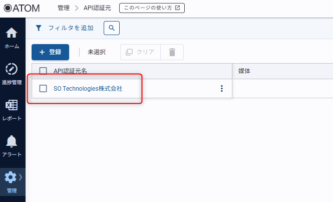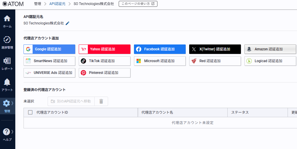 1. 代理店アカウントを登録したいAPI認証元名をクリックする