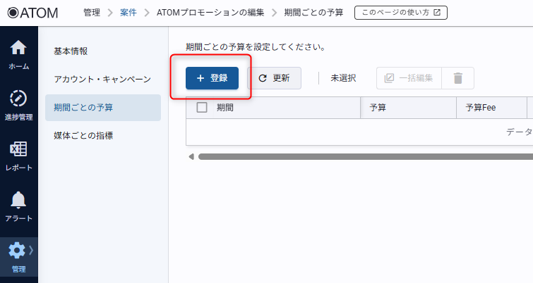 4. 期間ごとの予算の情報を入力して[登録]をクリックする