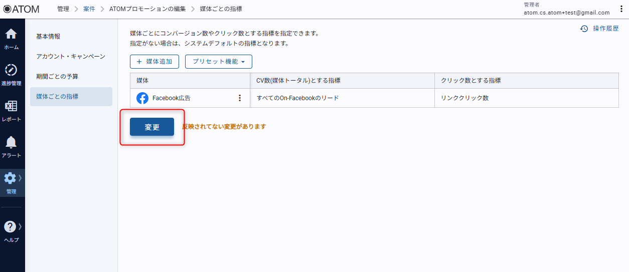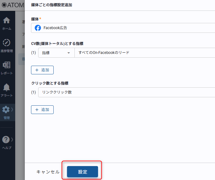 4. 媒体ごとの指標を入力して[設定]をクリックする
