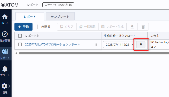 2. レポートが生成されたらダウンロードボタンをクリックする