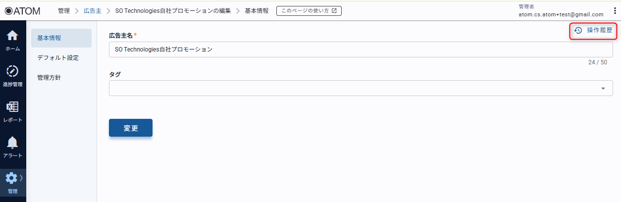 すべての広告主に対する操作履歴が表示されます。