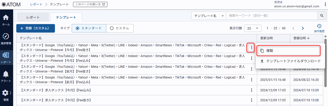 2. 複製を行いたいテンプレート名の三点リーダから[複製]をクリックする