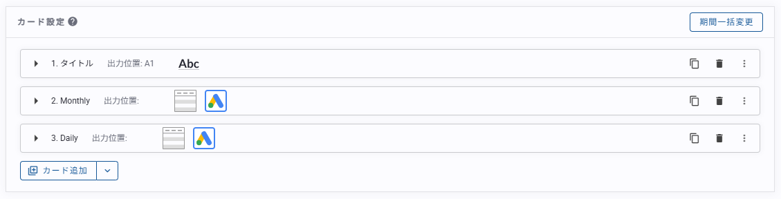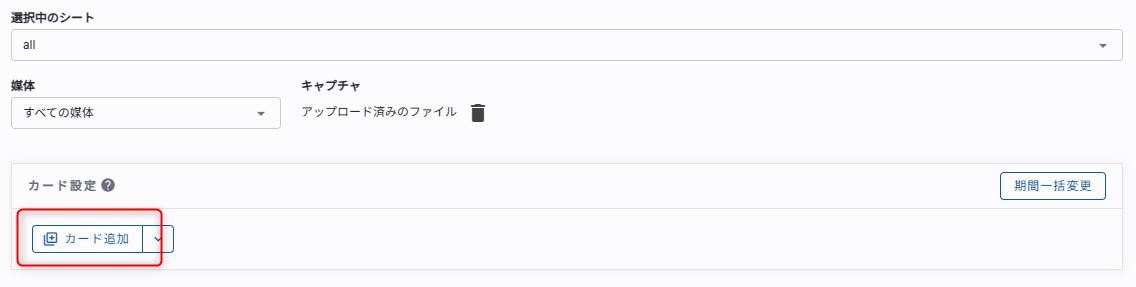 新規にカードを追加する場合、カード設定画面の[カード追加]をクリックしてカードを追加することができます。