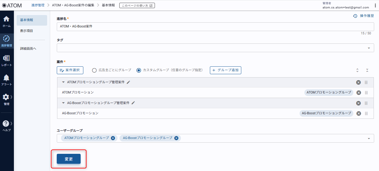 設定項目については進捗管理を登録する進捗管理詳細画面の表示項目を変更するを確認してください。