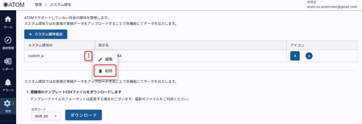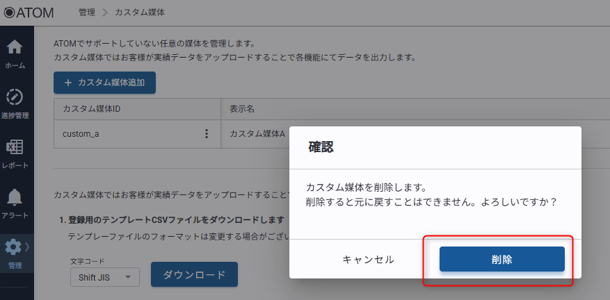 カスタム媒体を削除してしまうと元に戻すことはできません。削除は慎重に行ってください。