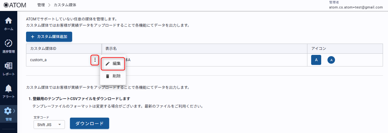 登録したカスタム媒体の情報を編集する方法を紹介します。