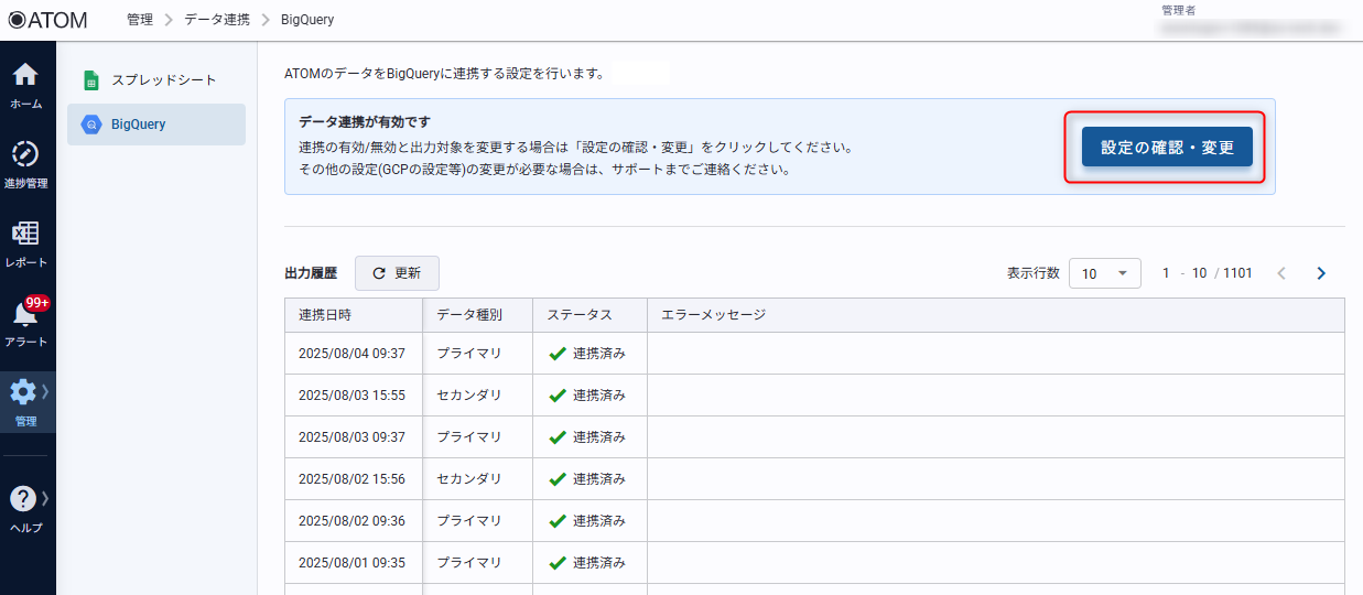 BigQuery連携の設定の変更方法