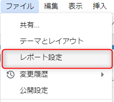 編集画面にて ファイル > レポート設定をクリックします。
