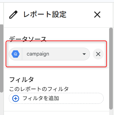 「データソース」 に「campaign」を設定します。
