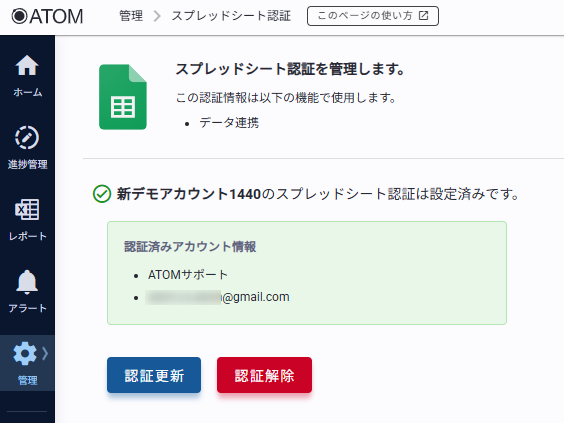 2. ATOM画面サイドバー[管理]の[Google Drive認証]をクリックする