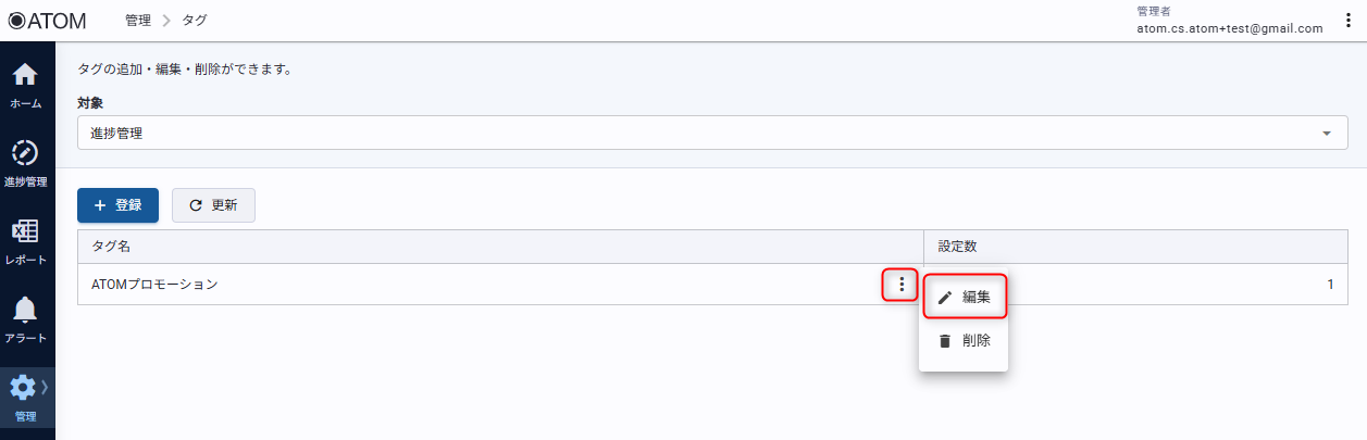 編集したいタグの三点リーダから[削除]をクリックすると削除可能です。