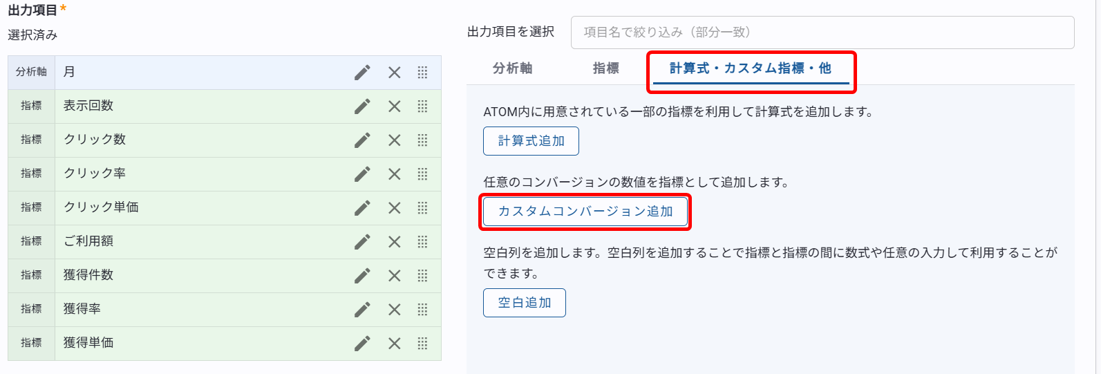ATOMに取得されているカスタムコンバージョンの確認方法