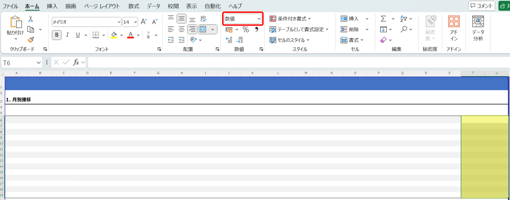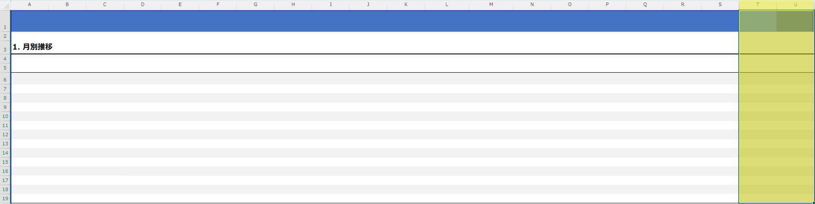 ダウンロードしたExcelファイル内の編集したいシートに出力したい指標用の列を追加します。
