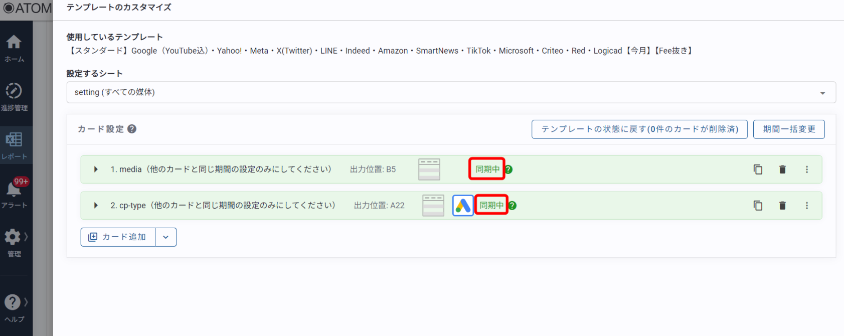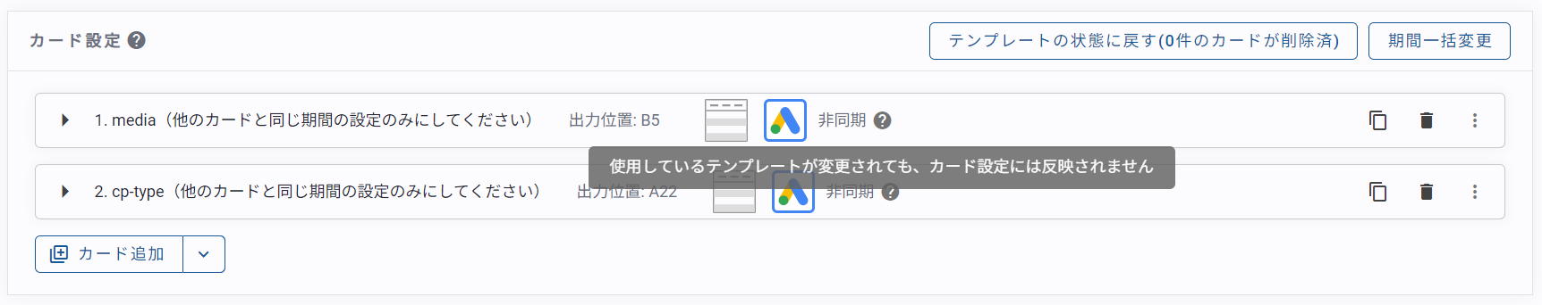 カードがカスタマイズされていない「同期中」の状態であればテンプレートの変更が反映されます。