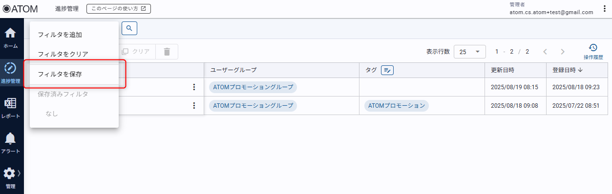 フィルタ保存機能はブラウザごとに設定が保存されます。他のユーザーには保存したフィルタが表示されません。