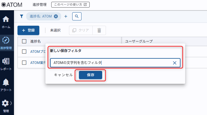 よく利用する進捗管理にアクセスしやすくするために、フィルタ保存機能を設定しましょう。