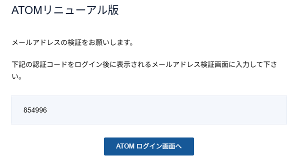| 件名 | ATOM | メールアドレスの検証が必要です |