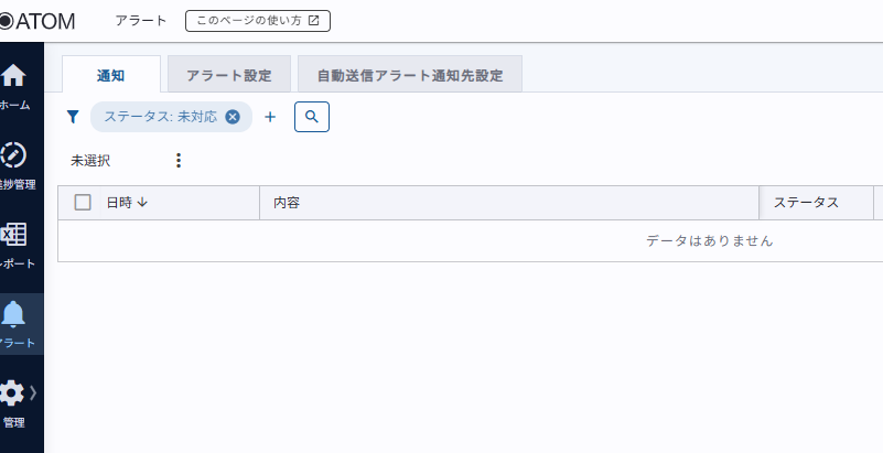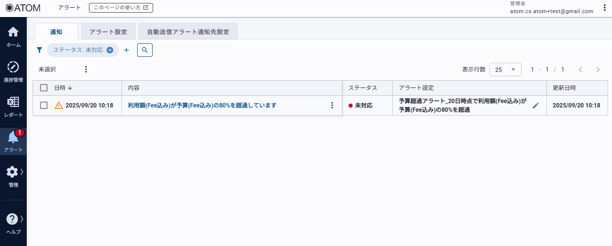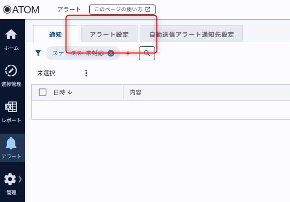 設定したアラートが発出されたときにはアラート通知画面に表示されます。