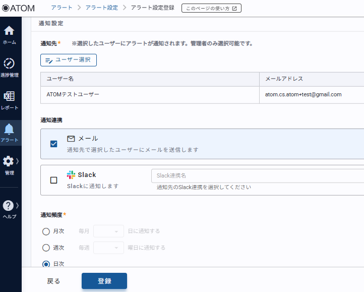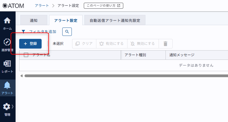 「管理対象」にはアラートの監視対象としたい進捗管理を選択してください。