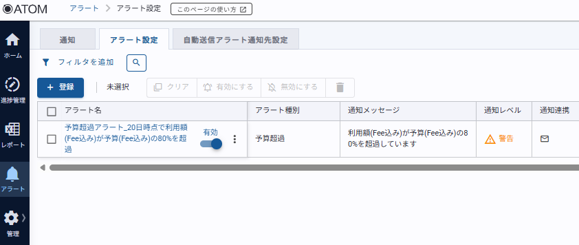 予算超過アラートの詳細は予算超過アラートを登録するを確認してください。