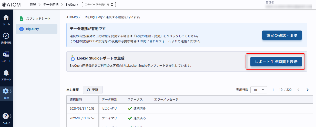 BigQuery連携画面でエラーが発生していないことを事前に確認してください。