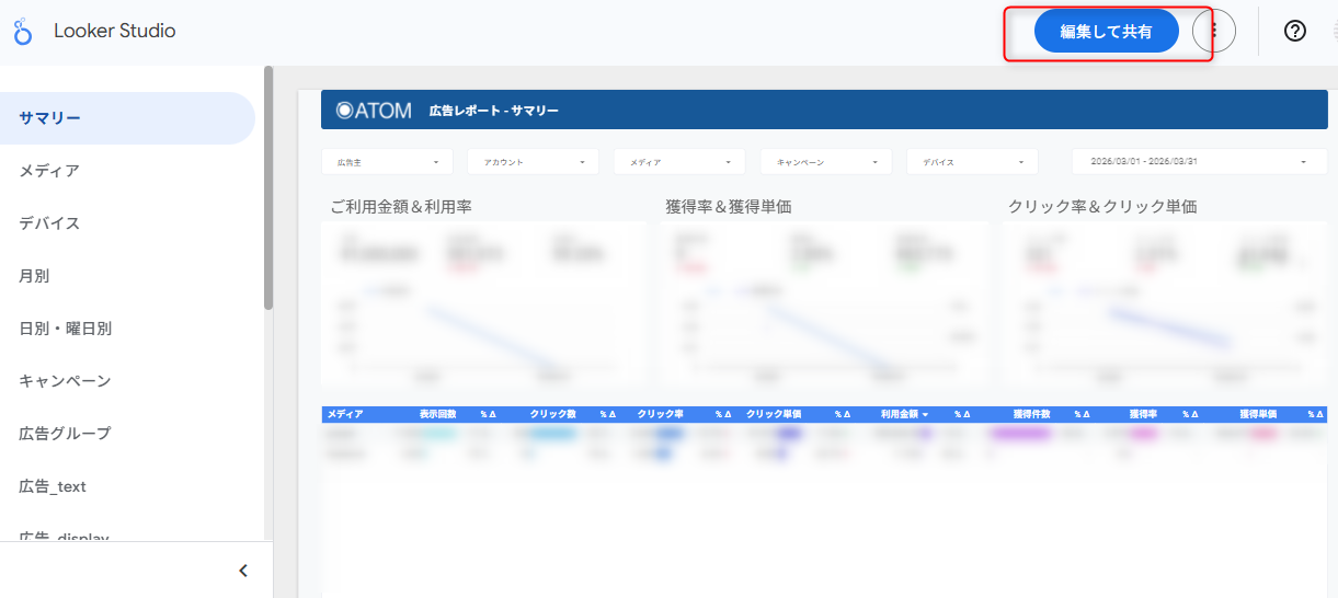 - ATOM提供のLooker Studioテンプレートの使い方に関するサポート
