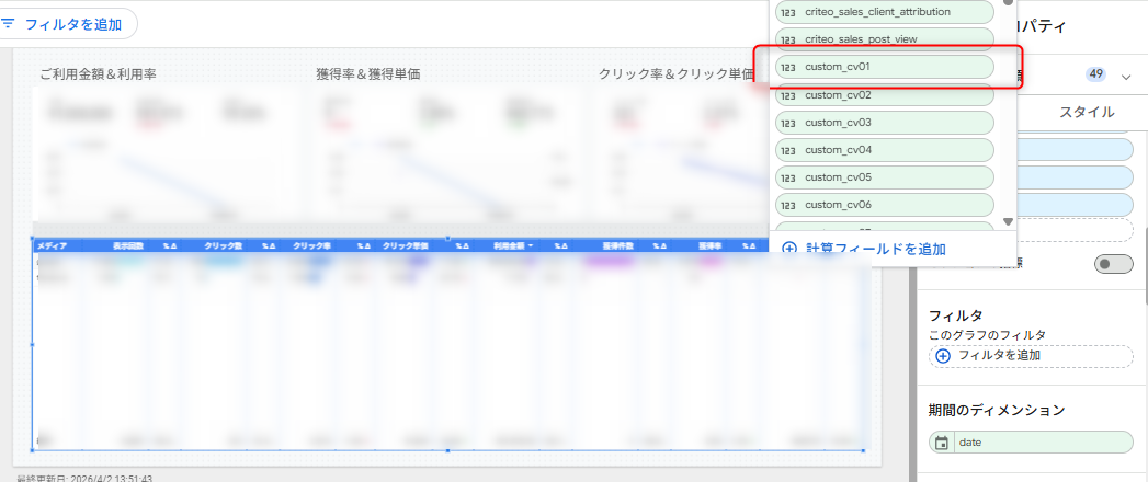 追加したカスタムコンバージョンをLooker Studioレポートに表示したいときは